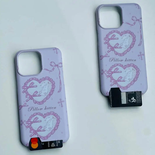 Heart Pillow Kitten Case with Card Wallet - iPhone