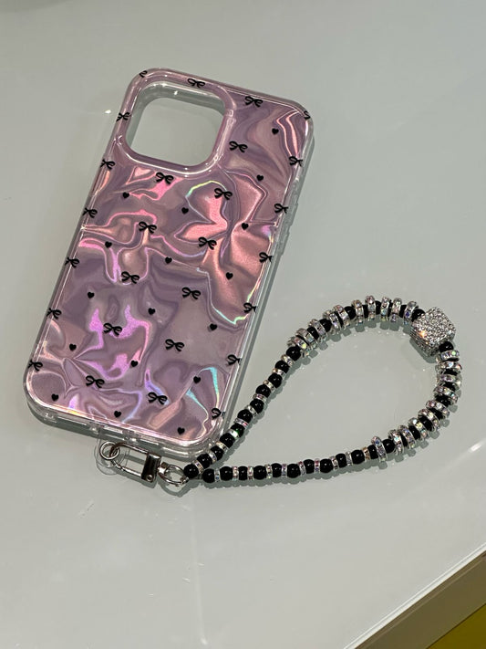 Rosy Ribbon Case With Pendant Charm - iPhone