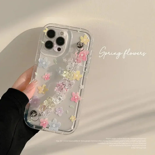 Diamond Marble Flower Case With Chain Pendant & Camera Ring - iPhone